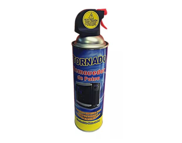 Aire comprimido tornado ideal para el mantenimiento preventivo y correctivo de todo tipo de equipos eléctricos y electrónicos. Gracias a su pureza este producto puede utilizarse en equipos sensibles como tarjetas madre, discos duros, periféricos de equipos de cómputo, televisores, cámaras, monitores, tarjetas de circuitos industriales, sensores, actuadores, piezas mecánicas, etc.