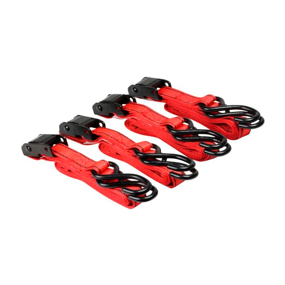 Es una herramienta que sujeta y transporta cualquier carga de manera segura. Sus cintas fabricadas en poliéster se ajustan fácilmente al volumen de la carga. Sus ganchos de acero con tratamiento térmico recubierto de PVC garantizan su durabilidad y cuentan con un seguro de liberación rápida para ofrecer una protección extra en sujeción y evitar desprendimientos. Fácil instalación, ideal para camionetas, motocicletas, campers y cuatrimotos.