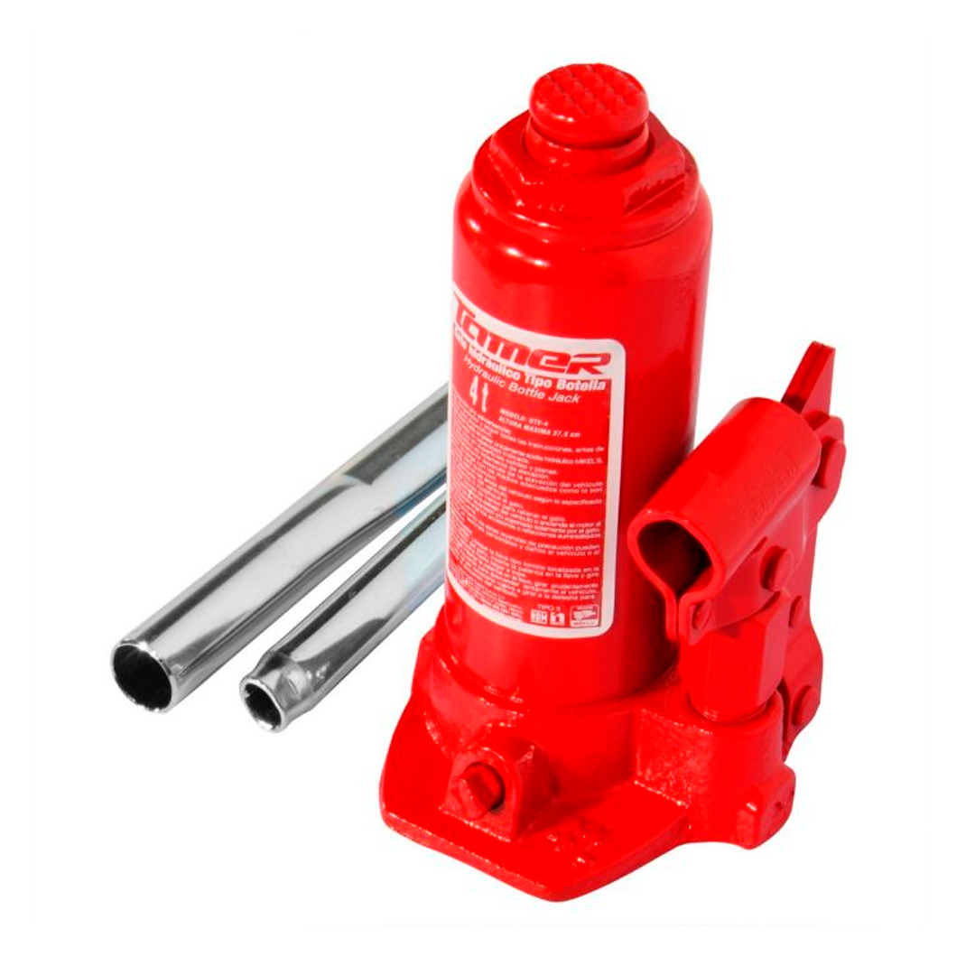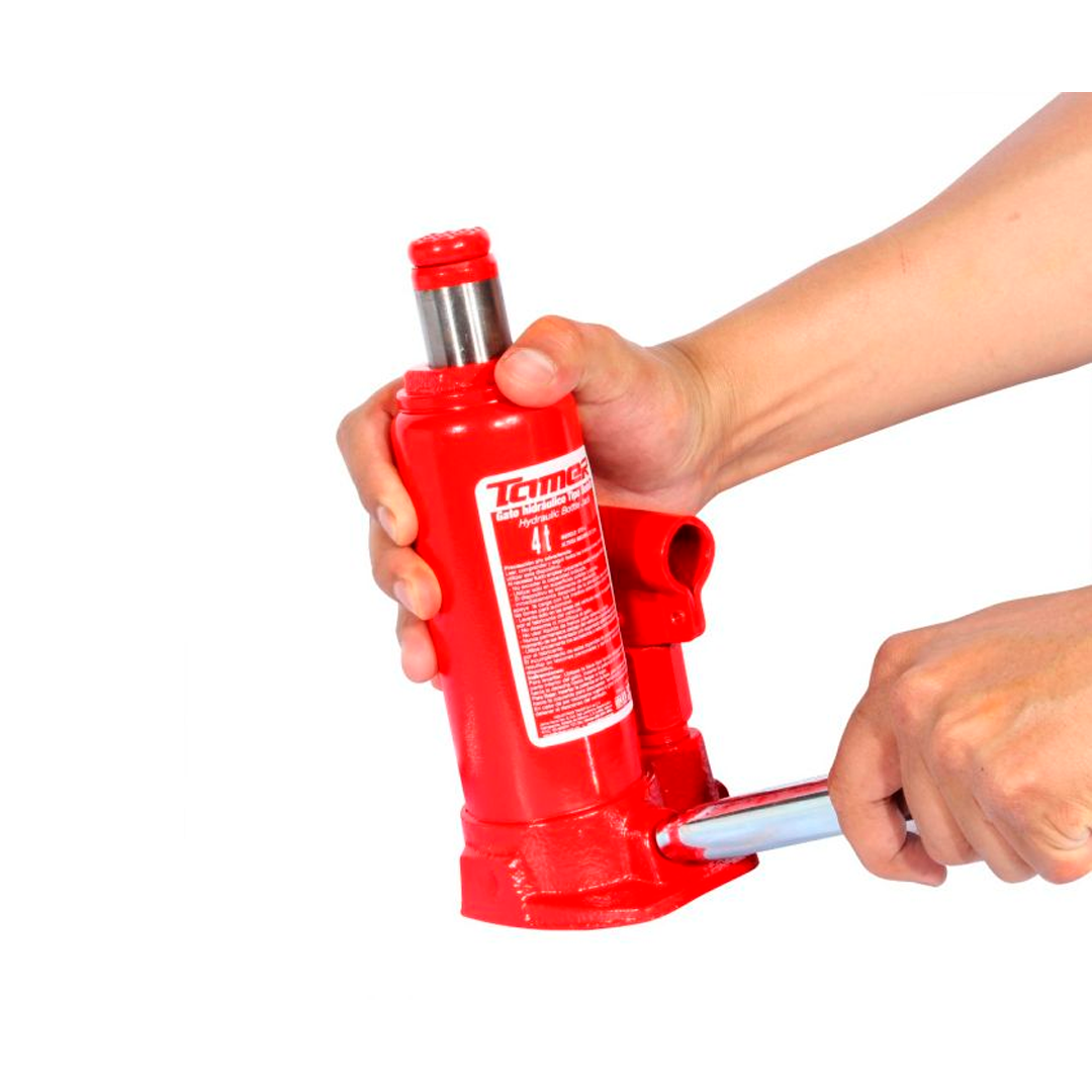 El gato hidráulico de botella MIKEL’S de 4 toneladas es una herramienta confiable para levantar vehículos en servicios automotrices o situaciones de emergencia. Su diseño incluye un tornillo de extensión que permite alcanzar alturas adicionales, facilitando el acceso a partes bajas del automóvil. Funciona tanto en posición vertical como acostado (bombeando hacia abajo), lo que lo hace versátil y funcional. Su construcción robusta y empaques resistentes aseguran una larga vida útil, mientras que su compatibilidad con aceite hidráulico SAE 30 garantiza un desempeño eficiente en cada uso.