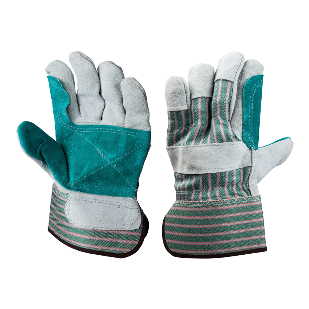 Fabricados en carnaza de cerdo en la palma y tela de algodón en el dorso.