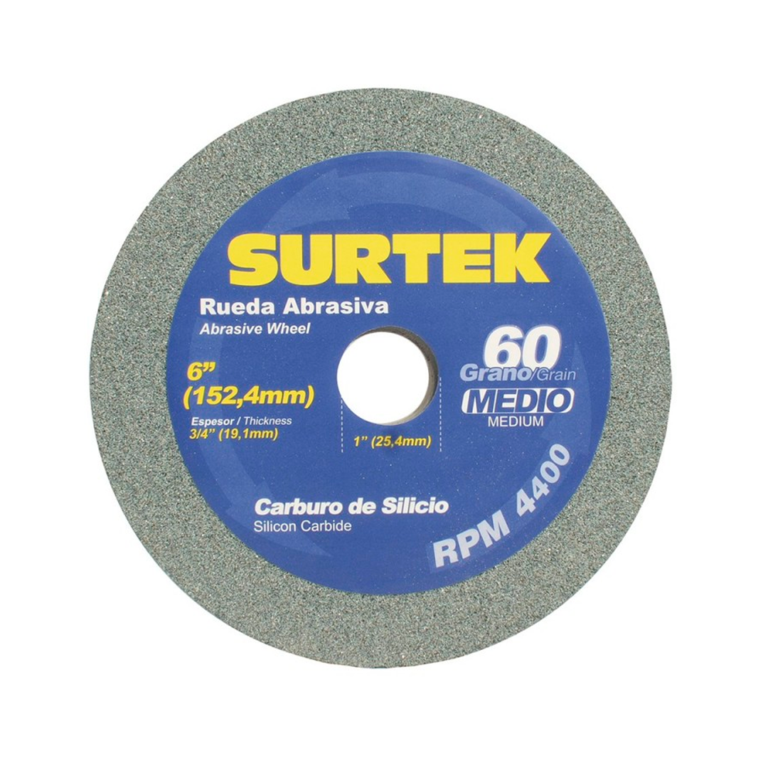 -Rueda abrasiva carburo de silicio 6 x 3/4" grano 60 Surtek