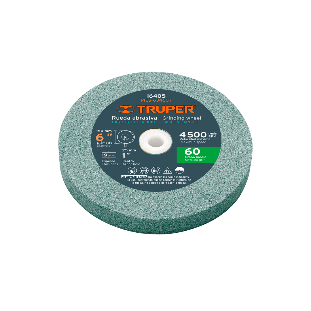 Rueda abrasiva p/esmeril 6"x19mm, carburo silicio, grano 60