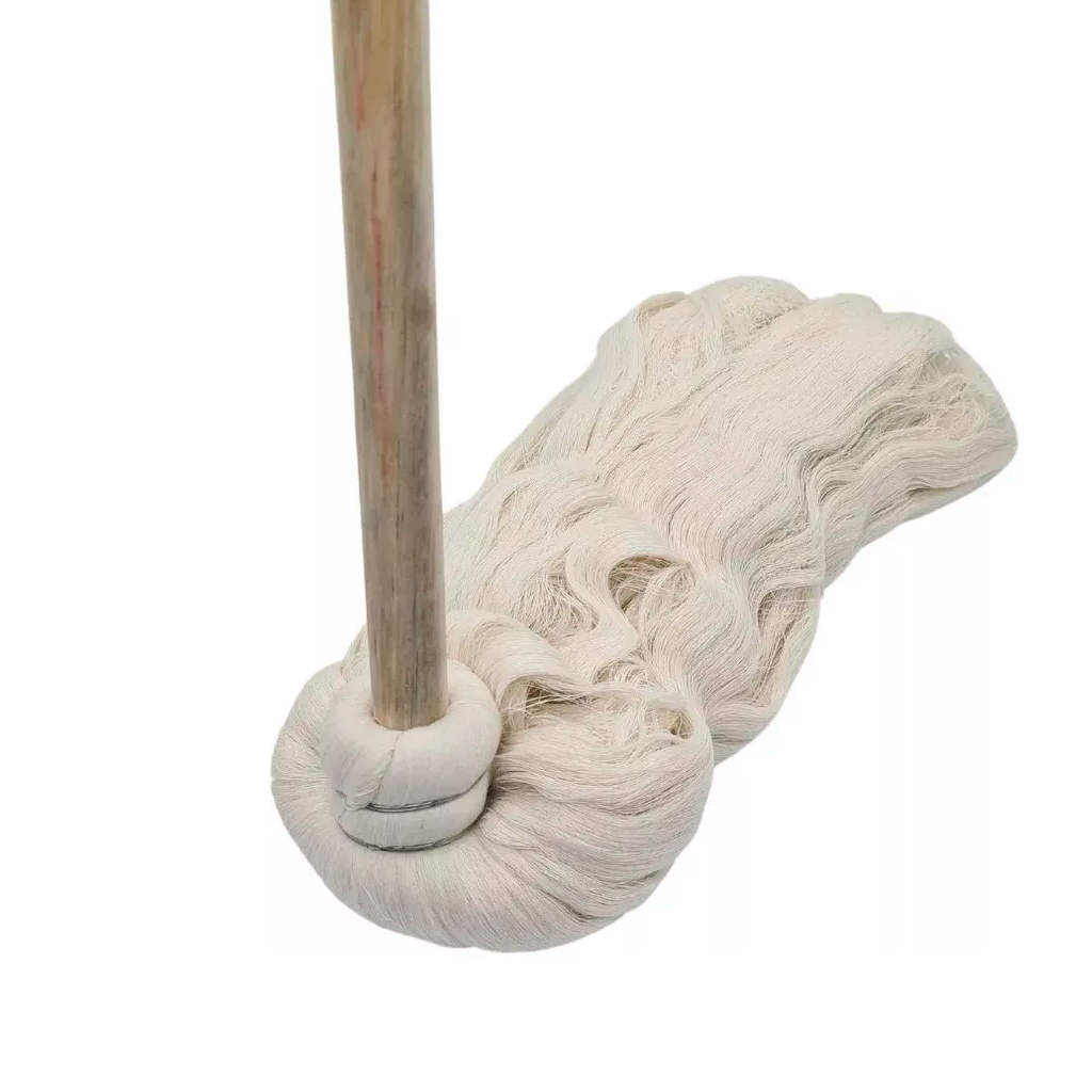 Trapeador de hilo 100% blanco suave, palo de madera
